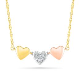 10K Tri-Colour Gold Heart Trio Diamond Necklace
