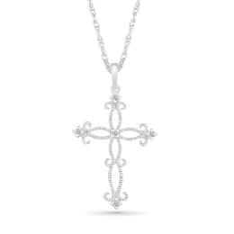 10K White Gold 0.08CTW Diamond Cross Pendant