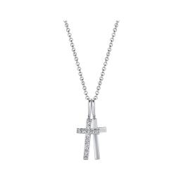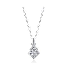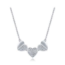 Sterling Silver Yellow Plated 19" Cubic Zirconia Heart Lock & Key Pendant