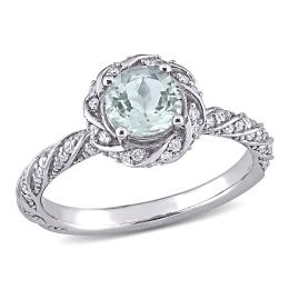 Julianna B 14K White Gold Aquamarine & 0.16CTW Diamond Fashion Ring