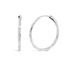 10K White Gold Hammered Diamond Cut Hoop Earrings