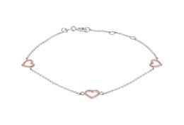10K Rose and White Gold 7.5" 3 Stations Open Heart Bracelet