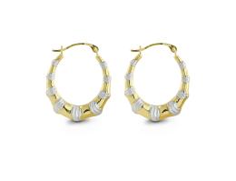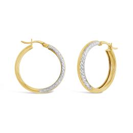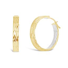 10K Yellow and White Gold Diamond Cut Hoops