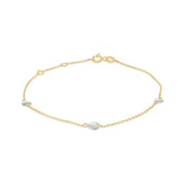 10K Yellow and White Gold 10" 3 Stations Heart Anklets