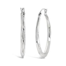 10K White Gold 20mm Polished Twist Octagon Creole Earrings