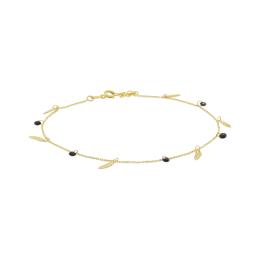 10K Yellow Gold Black CZ 10+1" Leaf Anklet
