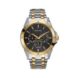 Caravelle Men's Two-Tone Stainless Steel Chronograph Date Feature Bold Blue Dial