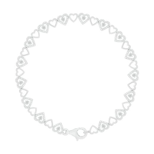Sweet and dainty, this darling bracelet is a lovely keepsake for your sweetheart. Crafted in sterling silver with 0.04ctwof diamond accents, this bracelet is 7.5" long and secures with a lobster claw clasp.