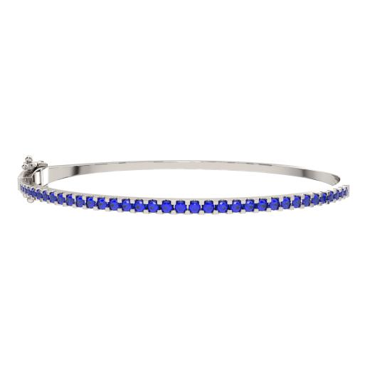 Crafted from sterling silver and adorned with created sapphires, it emanates a timeless and sophisticated beauty. The deep blue hue of the created sapphires set within the silver creates an elegant and graceful accessory that adds a touch of refined charm to any wrist.