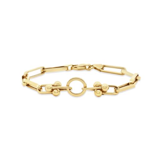 Exude elegance and sophistication with this 14K yellow gold open link bracelet. The design features smooth, polished links that alternate between open spaces, creating a light, airy feel with a touch of modern charm. At 7.5 inches, this bracelet fits comfortably on the wrist and adds a refined, timeless touch to any look.