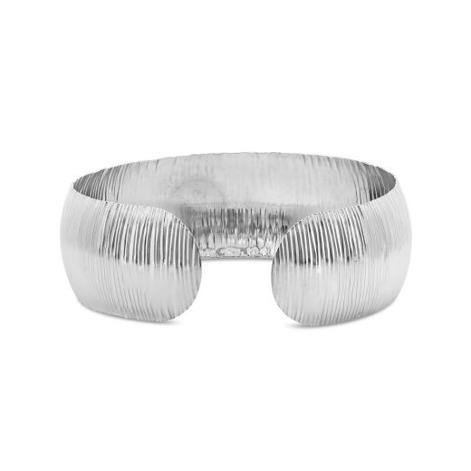 Striking in both scale and shimmer, this sterling silver large cuff bracelet features a subtle texture that adds a refined touch of brilliance. Its bold silhouette pairs beautifully with everything from tailored looks to casual ensembles, making it a versatile statement piece.