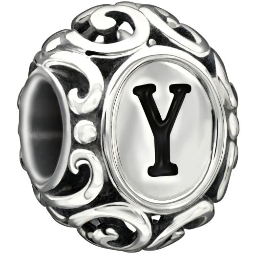 Initially Speaking Y is beautifully inspired with an elegant filigree design in sterling silver with black enamel letter detail. Be creative and choose the alphabet bead that represents your name, your children's initials, your anniversary month or combine several letters and spell something meaningful to you.