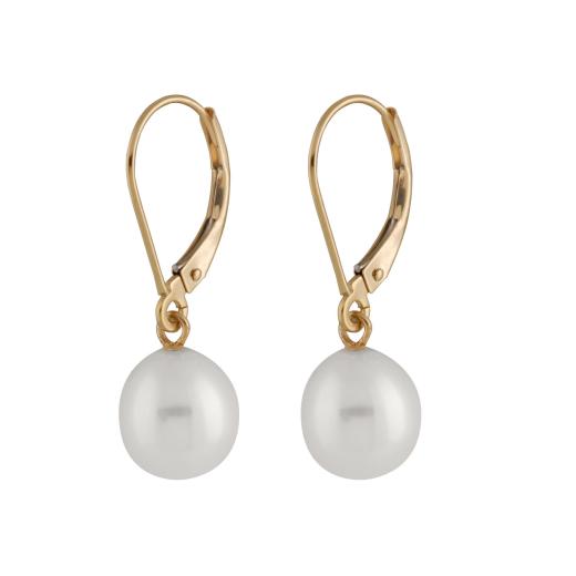 These elegant freshwater round 6-6.5mm white pearls set in 14k yellow gold. These earrings are versatile enough for everyday wear yet elegant enough for an evening out. The earrings fasten with leverback clasps
