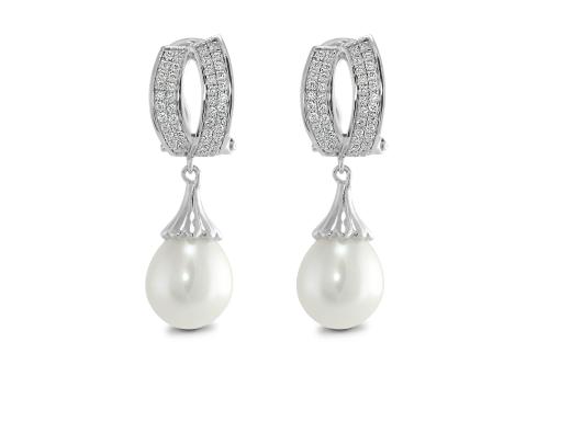 Transition effortless from day to night, with these simple yet elegant freshwater pearl earrings, set in sterling silver and adorned with sparkling cubic zirconia.