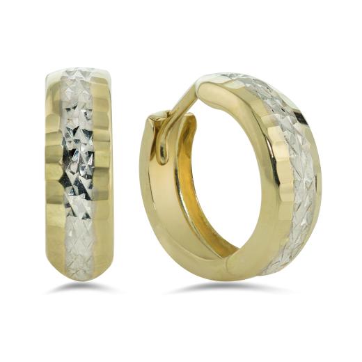 Add a touch of style to any look with these modern 10k gold hoops. Crafted in yellow gold and sparkling with a white gold diamond-cut centre for a splash of sparkle, these earrings are a perfect choice every time!