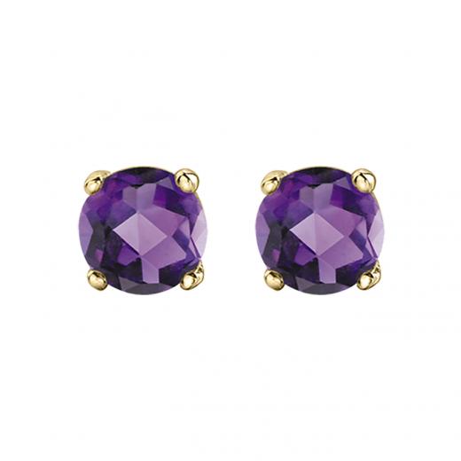 These classic stud earrings are set in 10-karat gold and feature 4mm amethyst gemstones. Amethyst is the birthstone for February. These earrings are a lovely versatile addition to any ensemble.