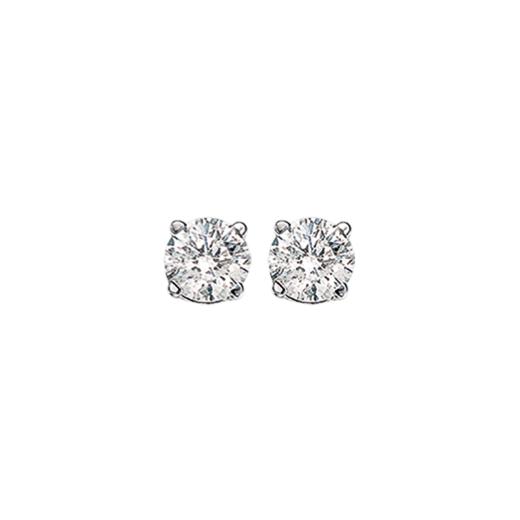 There is no more timeless a design than the classic diamond solitaire stud earrings. A 14kt white gold, four claw basket setting secure 0.33ctw of round brilliant cut diamonds. These earrings are secured with threaded posts and screw on backs. This ultra classic style can be worn day or night, with jeans or an evening gown.
