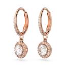 These earrings feature a sophisticated design, with multiple sparkling Swarovski crystals arranged to create a celestial-inspired look. The crystals are set in a way that captures and reflects light, offering a dazzling effect from every angle.