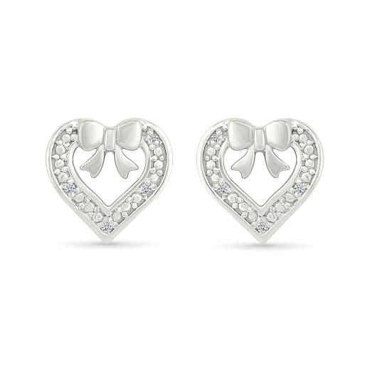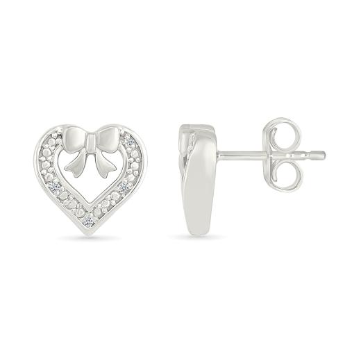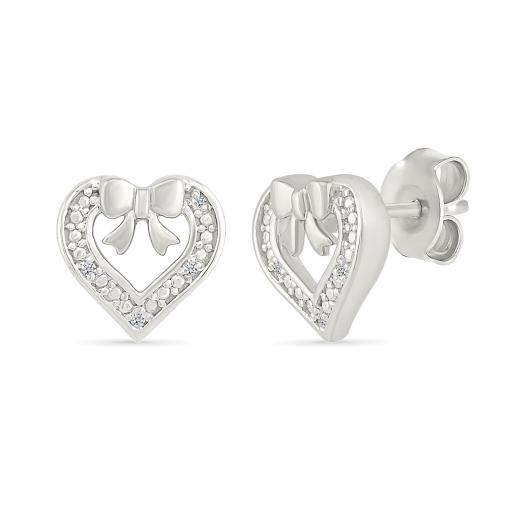 These Diamond Heart Stud Earrings shine ins sterling silver add a touch of sweetness with their delicate bow detail. Their heart-shaped design is accented with shimmering diamonds, creating a charming blend of sparkle and elegance. Perfect for everyday wear or a thoughtful gift, these earrings bring a whimsical touch to any jewelry collection.