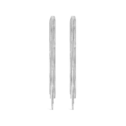 Delicately dramatic, these sterling silver chain drop earrings create a fluid cascade of polished links that sway with every movement. Their elegant dangle design captures light from every angle, adding shimmer and sophistication to both daywear and evening looks.