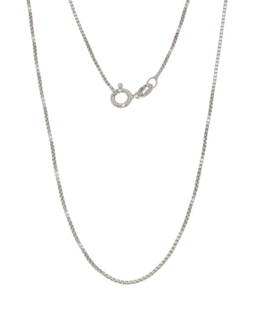 Crafted from sterling silver, a high-quality silver alloy commonly used in fine jewellery, this chain measures 24 inches in length with a slender diameter of 1.1mm. The box chain's design offers a subtle and elegant look that's both versatile and refined.