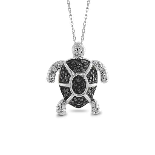 Remember that special moment with this sterling silver and midnight diamond turtle pendant. Elegantly shaped and finished, this pendant is an adorable additional to your collection.