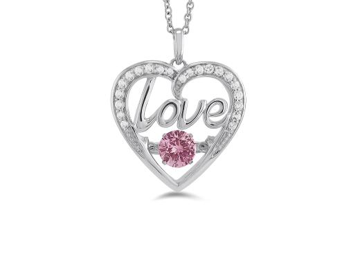 A plush pink created sapphire is featured within a heart of sparkling white sapphires in this romantic necklace for her. The dramatic created pink sapphire dances with your every move for the perfect sparkle. This pendant is the perfect expression of love.