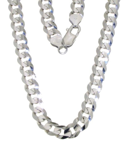 The Sterling Silver 20" 8mm Concave Curb Chain is a bold and distinctive piece of jewellery. Crafted from high-quality sterling silver, this chain features a concave curb link design, known for its flattened, curved links that create a striking and eye-catching appearance. With a length of 20 inches and a substantial width of 8mm, this chain makes a statement, adding a touch of confidence and style to any outfit. The unique concave shape of the links sets this chain apart, making it a standout accessory that effortlessly elevates both casual and more formal ensembles. Its sterling silver construction ensures durability while showcasing a bold and fashion-forward look.