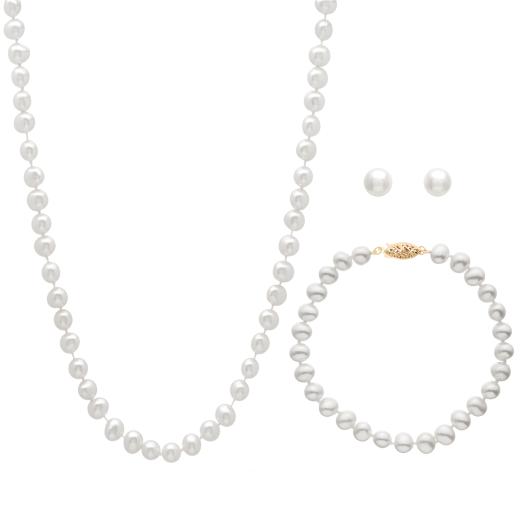 6-7mm white freshwater pearl necklace with 14k clasp and matching bracelet and earrings