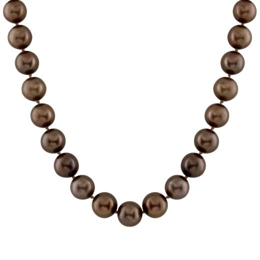 9-10mm chocolate freshwater pearl 18" necklace with 14k gold fisheye clasp.