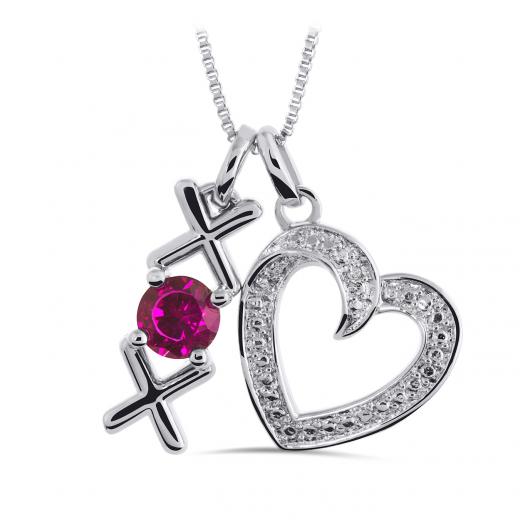 Showcase your love with this sterling silver love necklace. Featuring a created ruby XO charm and a dazzling diamond heart charm for a splash of colour and a touch of sparkle.