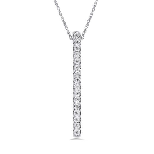 Captivate with this modern classic designed by Bella Moda- this line pendant features a sparkling 0.04ctw of round diamonds artfully crafted in shimmering sterling silver. Suspended for an 18" rope chain, this piece is fantastic worn on its own or layered for a fashion forward look. Bella Moda - Beauty is always in fashion.