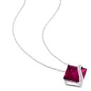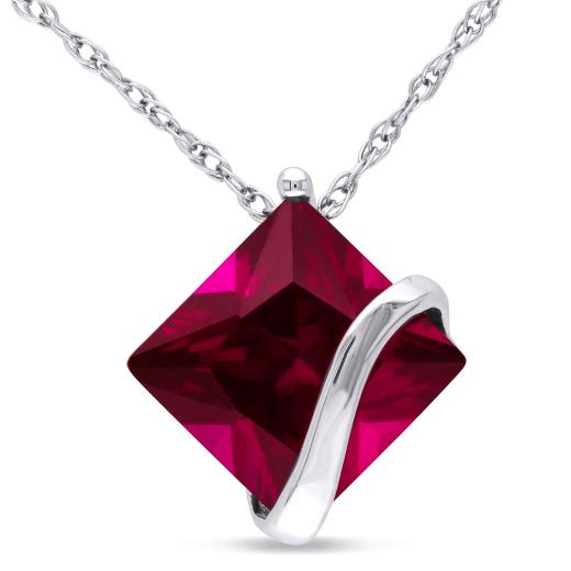 Express your love and commitment with this exquisite Created Ruby white gold Diamond-shaped Solitaire Pendant. Crafted in white gold, this elegant pendant features a square-cut (8mm) created ruby gemstone. This attractive pendant is hung on an 17-inch rope chain and is secured with a spring ring clasp.