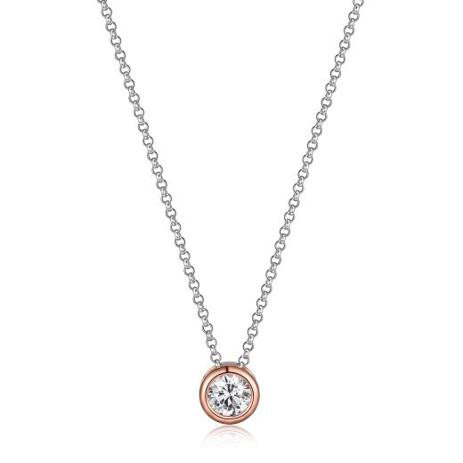 This striking necklace features a sleek spherical pendant set in a two-tone bezel, blending gold and silver for a sophisticated contrast. The polished design offers a modern, versatile look that pairs effortlessly with both casual and formal styles.