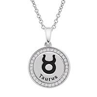 Fashioned in sterling silver and set with 0.10ctw of glimmering diamonds, this Taurus zodiac pendant is suspended from an 18" cable link chain secured with a spring ring clasp. Taurus- The Bull: April 20 to May 20