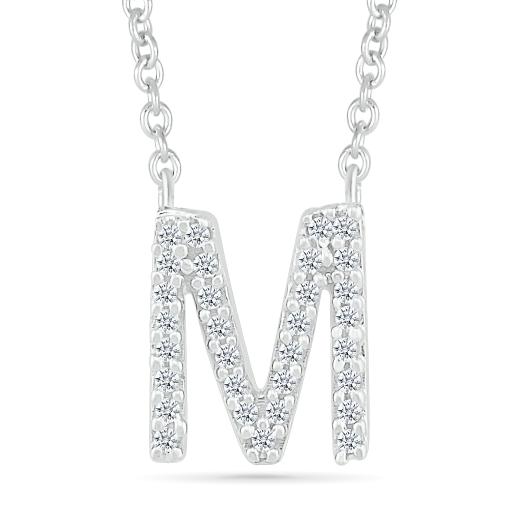 Delicate yet dazzling, this sterling silver and diamond 'M' initial necklace captures the beauty of personal style with a touch of sparkle. Each diamond glistens gracefully, accentuating the elegant initial for a look that’s both timeless and uniquely yours—a perfect blend of sentiment and sophistication.