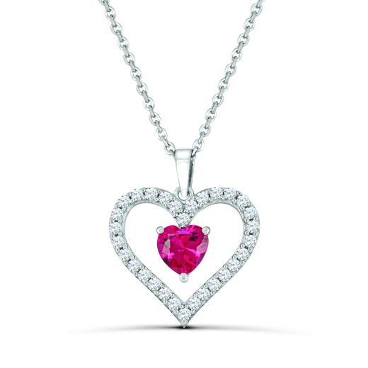 This gorgeous necklace is crafted in sterling silver and set with a heart-shaped created ruby and accented with shimmering created white sapphires. A beautiful addition to any jewellery collection.