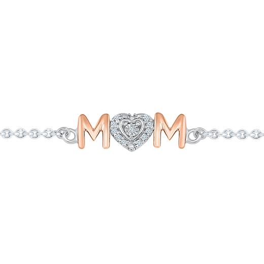 This necklace features a heartwarming design crafted in sterling silver, with the word "Mom" adorned with a delicate diamond accent. The addition of the diamond adds a touch of brilliance, symbolizing the enduring and unconditional love that a mother provides.