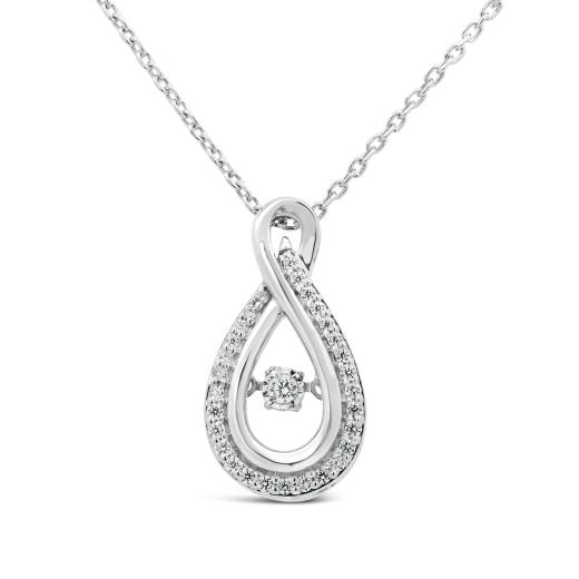 Indulge in the captivating allure of our Dancing Diamonds Sterling Silver Pendant, adorned with a dazzling 0.14 carat total weight of diamonds. This unique piece is designed to dance and shimmer with your every move, creating a dynamic and eye-catching effect. Crafted in sterling silver, the pendant adds a touch of glamour and sophistication to any ensemble, making it a versatile and elegant accessory for both casual and formal occasions.
