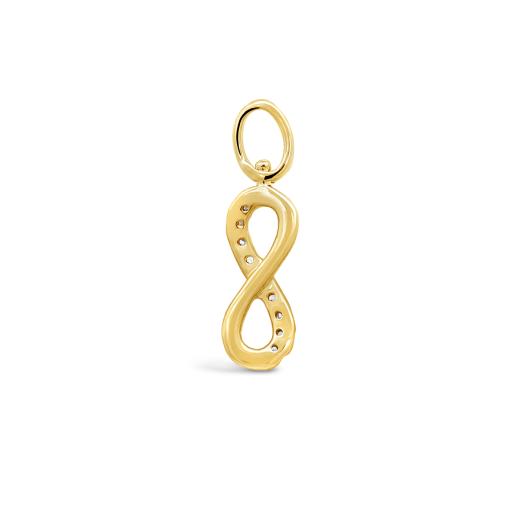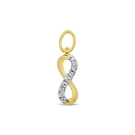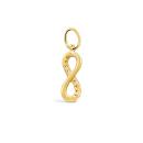 Elevate your jewellery collection with our 10K yellow gold infinity sign charm, adorned with shimmering diamonds. Designed for effortless mix and match, this versatile charm empowers you to create a personalized and timeless style. Pair it with our matching Charmables infinity sign earrings to symbolize eternal love and add a touch of elegance to any ensemble.