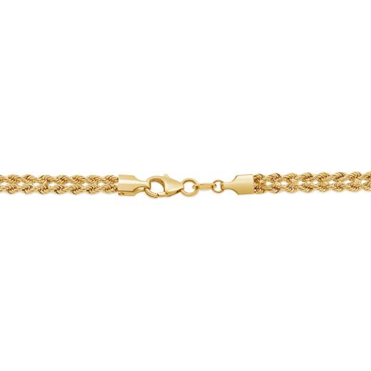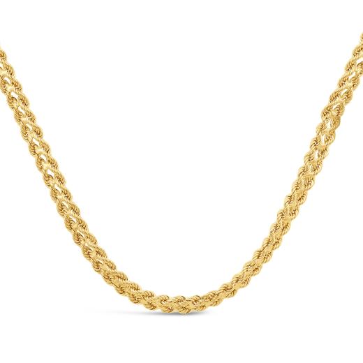 This 10K yellow gold 18" semi-solid double rope chain offers a timeless, elegant design with interwoven links, providing a luxurious, lightweight feel perfect for everyday wear.