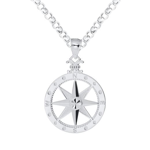 Navigate life with style wearing this Sterling Silver Compass Pendant. Symbolizing guidance and adventure, this pendant offers a sleek and timeless design, making it the perfect accessory for those who seek direction and elegance in their journey.