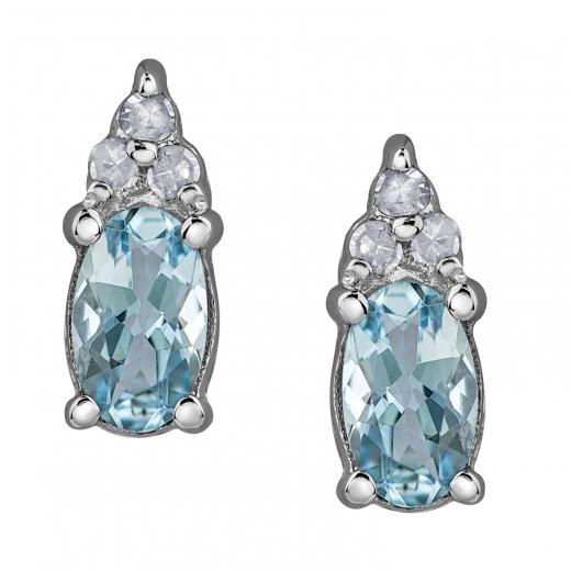 This attractive ring features an oval cut aquamarine accented by shimmering diamonds. This birthstone ring is set in 10k gold and enhanced with a high polish finish. Aquamarine is the March birthstone, making this ring the ideal choice as a birthday gift, or adding a touch of class to your own jewellery collection.