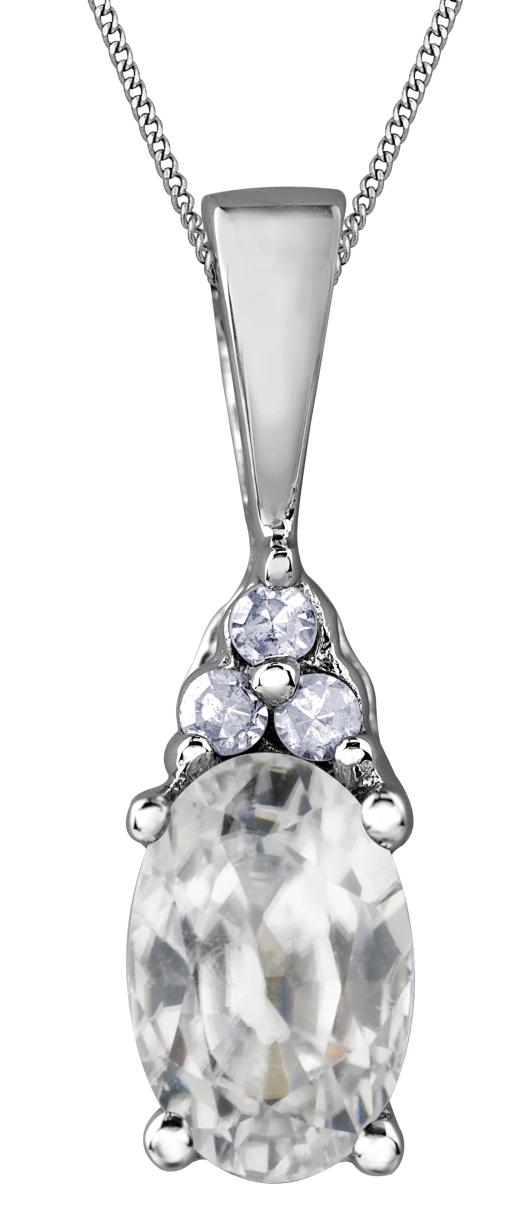 This attractive ring features an oval cut white zircon accented by shimmering diamonds. This birthstone ring is set in 10k gold and enhanced with a high polish finish. White Zircon is the April birthstone, making this ring the ideal choice as a birthday gift, or adding a touch of class to your own jewellery collection.