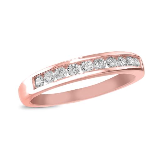 Crafted from lustrous rose gold and adorned with sparkling diamonds totaling 0.25 carats, this band showcases an infinity symbol design. With its timeless beauty and sentiment, it serves as a charming and meaningful piece, perfect for expressing everlasting love.