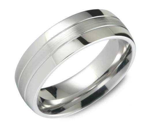 A 7mm white cobalt band with a brush finished centre makes a fashionable addition to any jewellery collection and an ideal wedding band.