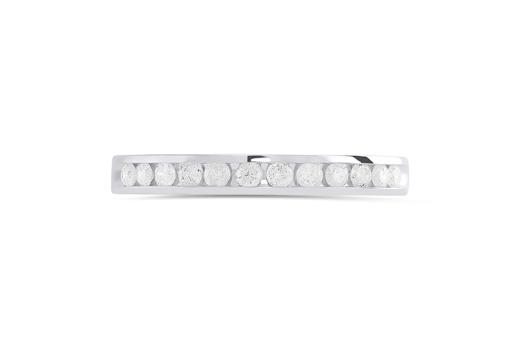 An elegant 10k white gold band lined with round diamonds is a beautiful statement of your love to one another.