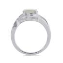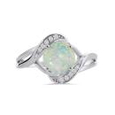 A radiant celebration, this created opal fashion ring is sure to charm and delight. Designed in sleek sterling silver this ring features a stunning iridescent round created opal bordered with a swirl of glittering created white sapphires for extra sparkle.