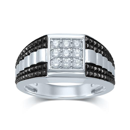 This marvelous men's ring is studded with round white diamonds set in 10k white gold with a black rhodium finished design. This beautiful ring is enhanced with a high polish finish.