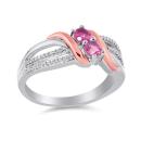 This classic fashion ring is perfect for any outfit. Designed in sleek sterling silver with rose gold accents this ring features two sparling created pink sapphires. Buy this amazing piece for yourself or for someone you love!